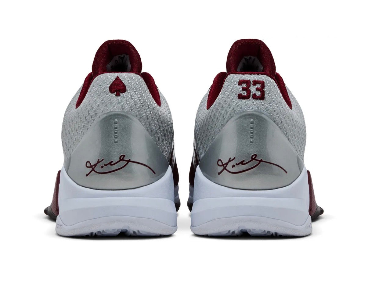 The 2026 edition of the Nike Zoom Kobe 5 Protro 'Lower Merion Aces' brings back a colorway inspired by Kobe Bryant's high school basketball team. Like the original 2010 release, the sleek synthetic upper features a Metallic Silver base with contrasting Team Red accents. Kobe's Sheath logo adorns the tongue, while the athlete's high school jersey number appears on the back tab of the right shoe. This Protro edition utilizes a Cushlon midsole with a large-volume Zoom Air unit in the forefoot.